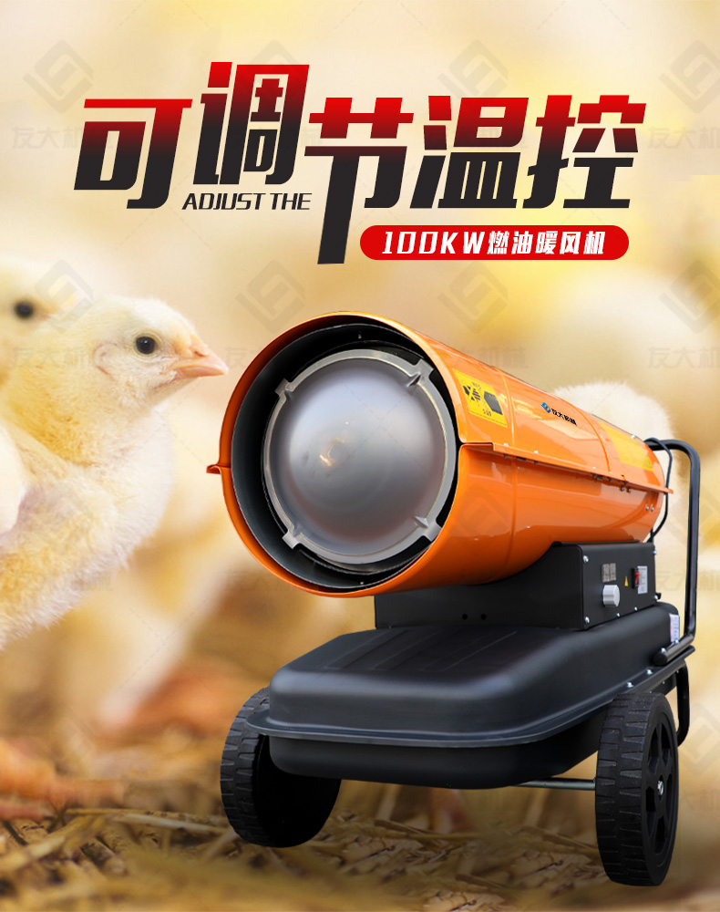 100kw燃油暖风机大风量,升温快,可满足大面积取暖要求。此设备燃烧结构经过了优化,大大提高了燃料利用率,即可快速升温加热,缩短等待时间。而且其温控装置非常灵敏,保证加热温度,节约燃料消耗,是经济实惠的选择。